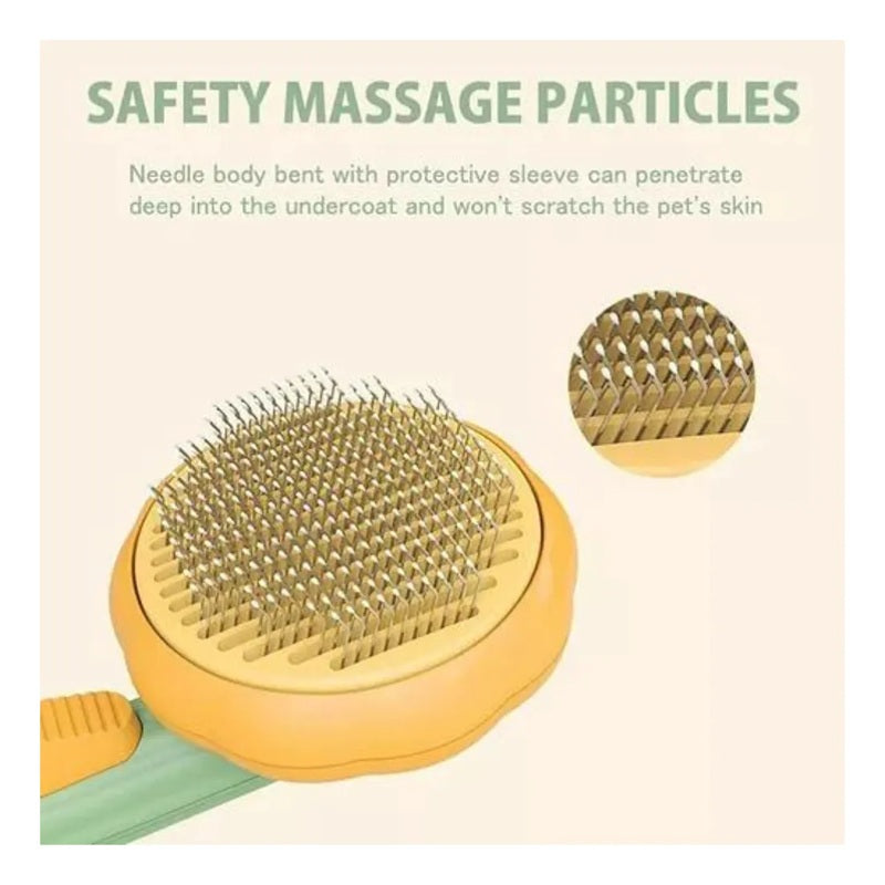 Haz del cepillado un momento agradable y sin esfuerzo. Este cepillo removedor de pelo con botón de limpieza automática elimina el pelo suelto fácilmente mientras masajea y cuida la piel de tu perro o gato.